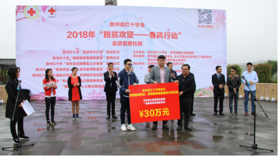为贯彻国精准扶贫政策,实施医疗精准扶贫的战略方针,我院充分发挥慈善“人道·博爱·奉献”的社会主义人道博爱精神,在2018年5月9日贵州省红十字会2018年“脱贫攻坚——春风行动”走进百里杜鹃的活动中,特向省红十字会“癫痫病患者控制基金”捐赠30万元,用于癫痫专治救助。