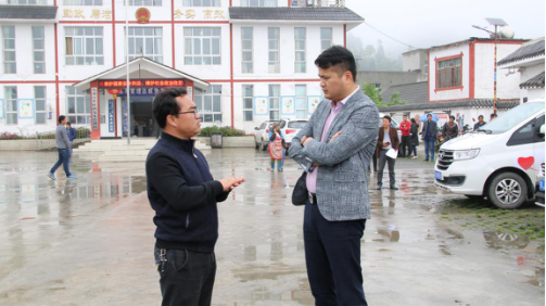 图 3 陈院长与戛木管理区工作人员就助学善款的使用进行交流